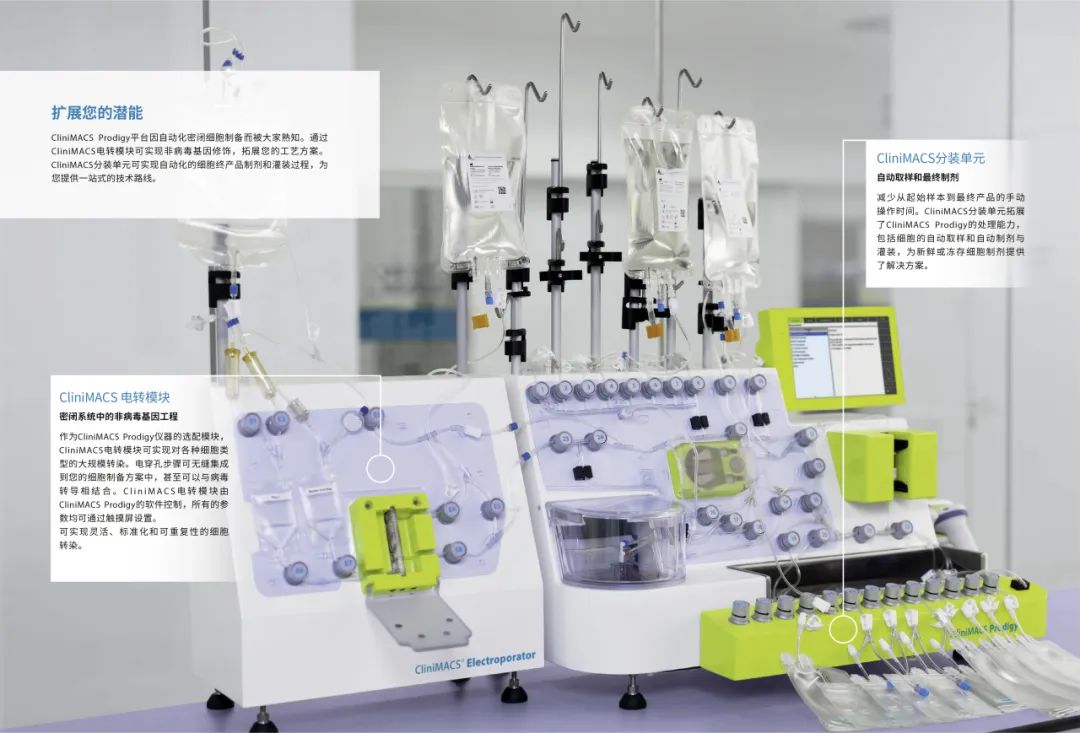 樣本制備-磁珠分選-細胞的基因改造-培養擴增-成劑均在一臺全自動全封閉且滿足GMP要求的設備CliniMACS Prodigy®上完成
